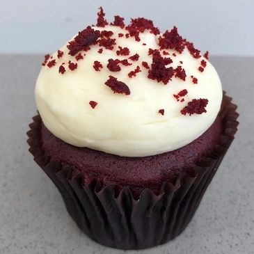 grandma's red velvet cake with our signature cream cheese frosting