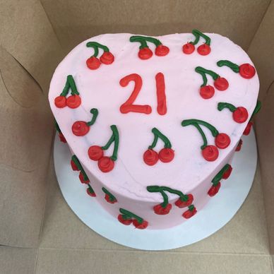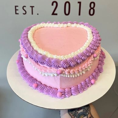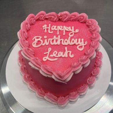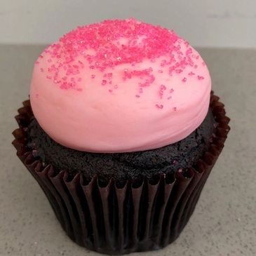 chocolate cake with our signature pink buttercream topped with pink crystals