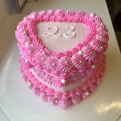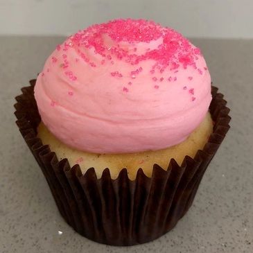 vanilla cake with our signature pink buttercream topped with pink sugar crystals